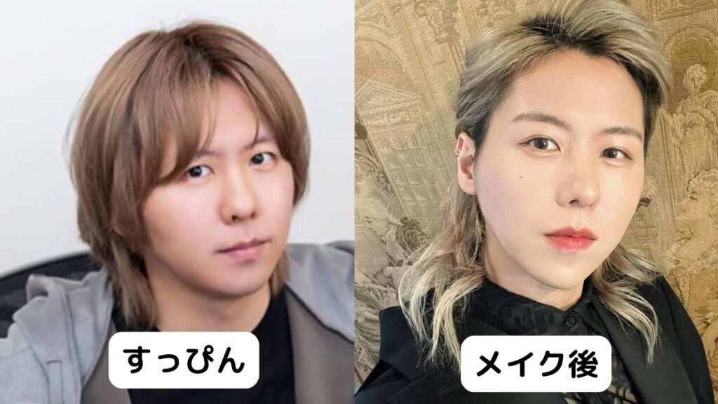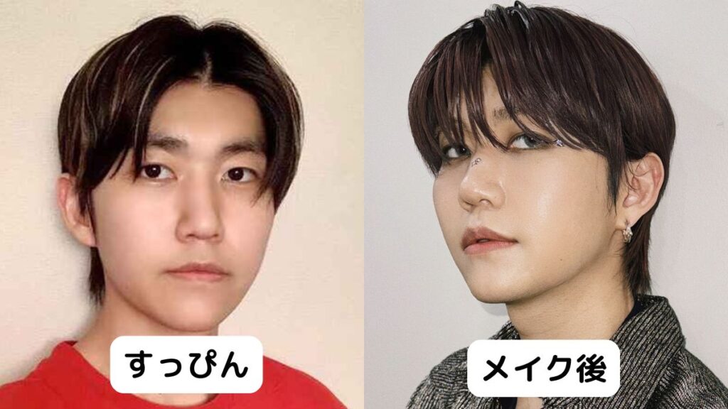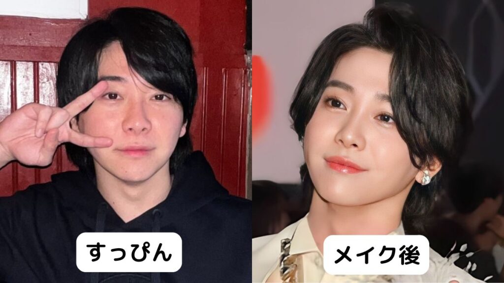 続いて、若井滉斗さんのすっぴんとメイク後の比較画像です。